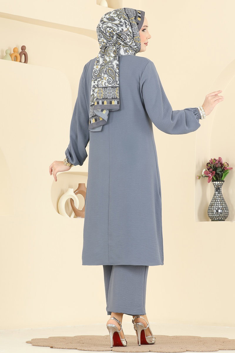 Yandan Yırtmaçlı Şık Takım 3032SMD1186-MS Gri