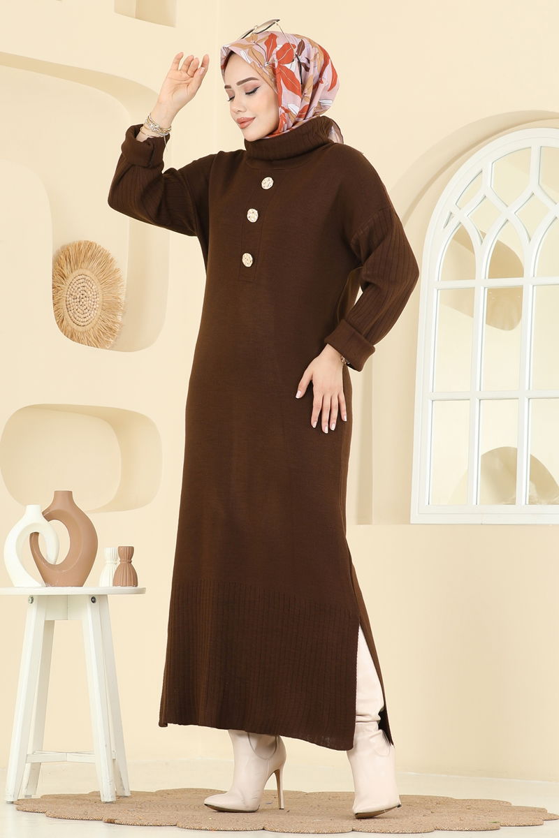 Yandan Yırtmaçlı Triko Tunik 2760AYD574-MS Kahve