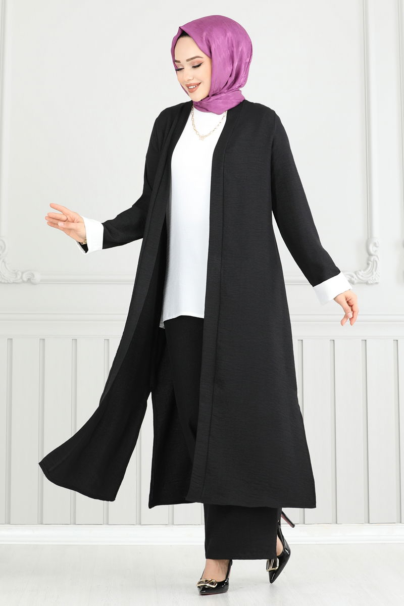 The Side Slit Triple Set offers a modern and chic design with comfort across all seasons. Made from Sofia Linen fabric, this special set is suitable for delicate wash and can be washed at 30 degrees. Featuring side slits and a crew neck design, it stands out with its unlined structure providing a light and comfortable fit. It includes a sleeveless inner blouse and elasticated waist pants. Ideal for both everyday wear and special occasions.