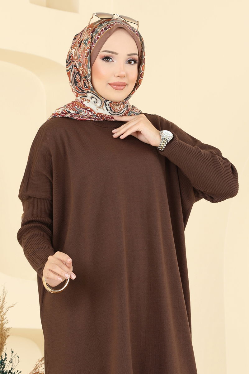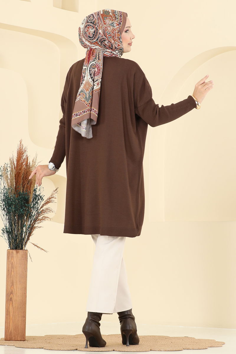 Yarım Boğazlı Triko Tunik 1047KLN570-MS Kahve