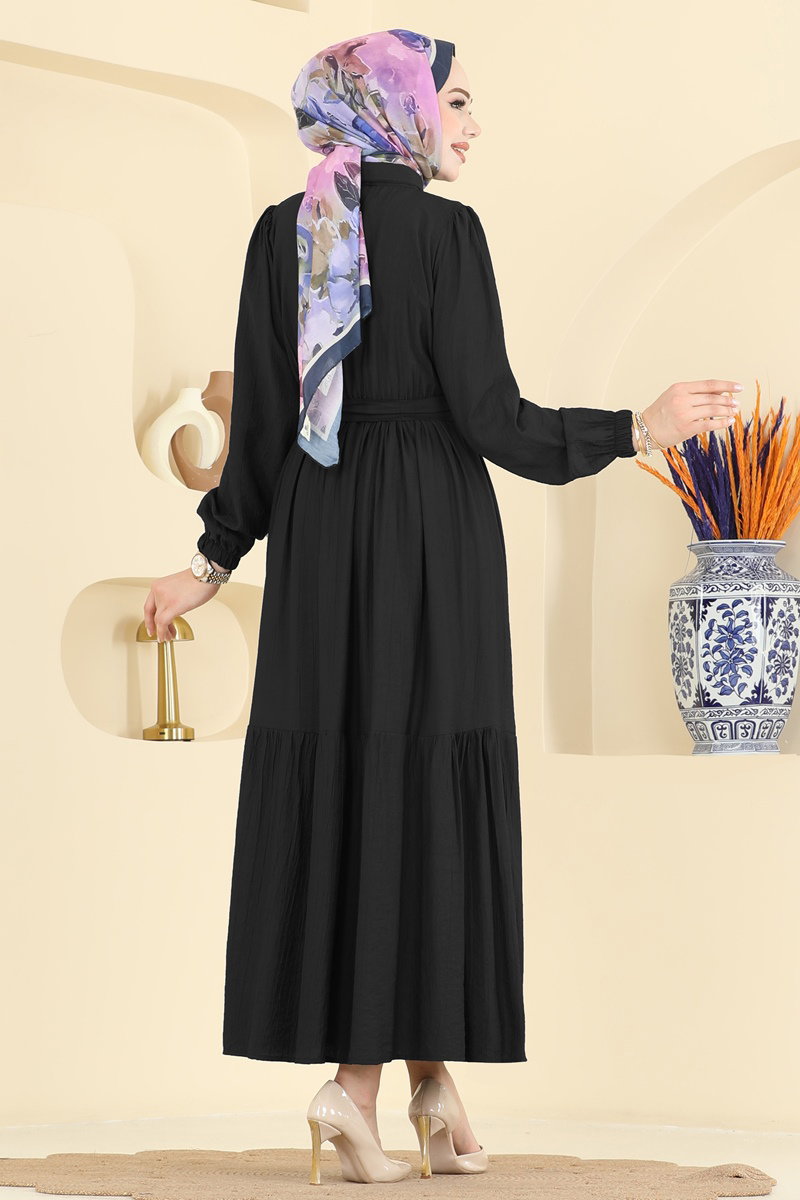 Yarım Düğme Detaylı Elbise 2781AYD574-MS Siyah