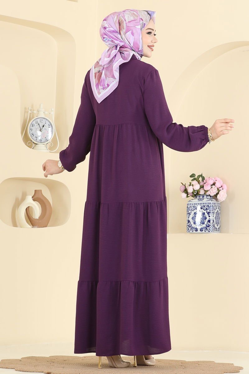 Mor Aerobin Kumaşlı Yarım Düğmeli Elbise