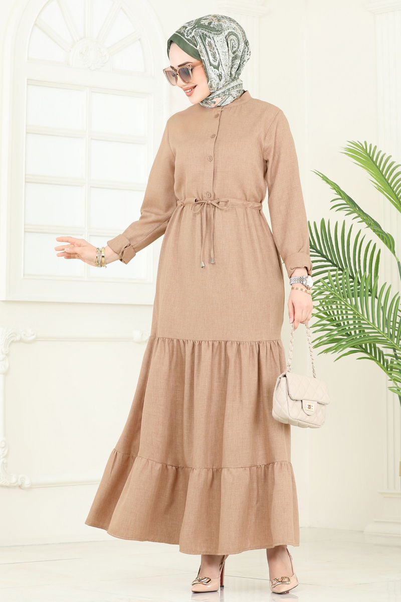Yarım Düğmeli Elbise 3049KTR750-MS Açık Kahve