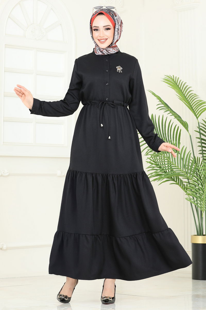 Yarım Düğmeli Elbise 3049KTR750-MS Siyah