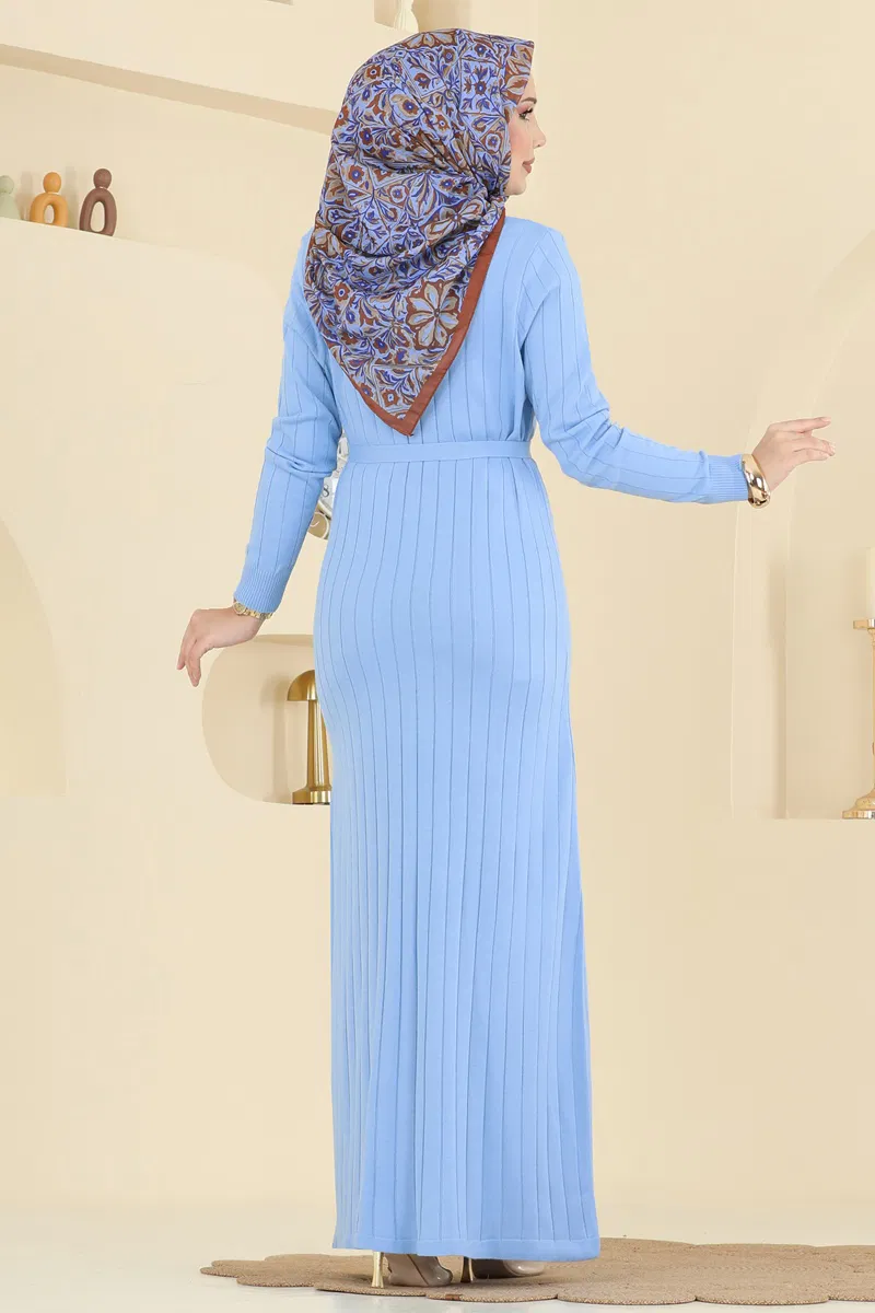 Yarım Düğmeli Triko Elbise 0012MT581-MS Bebe Mavi