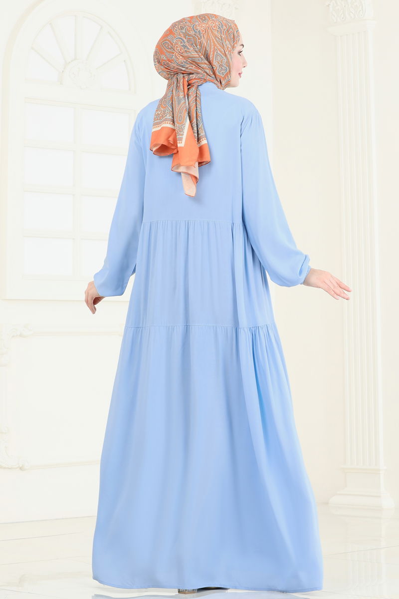 Yarım Düğmeli Viskon Elbise 4091ZNN863-MS Bebe Mavisi