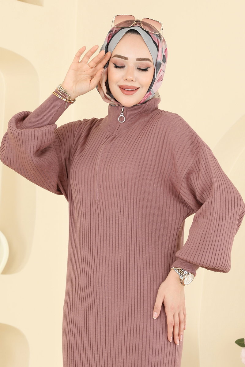 Yarım Fermuar Detaylı Elbise 2770AYD574-MS Gül Kurusu