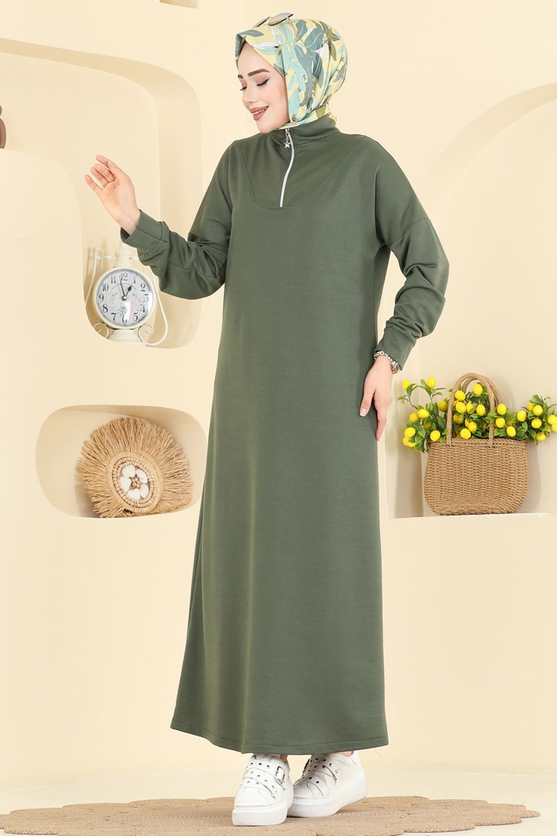 Yarım Fermuarlı Elbise 13366ETT926-MS Haki