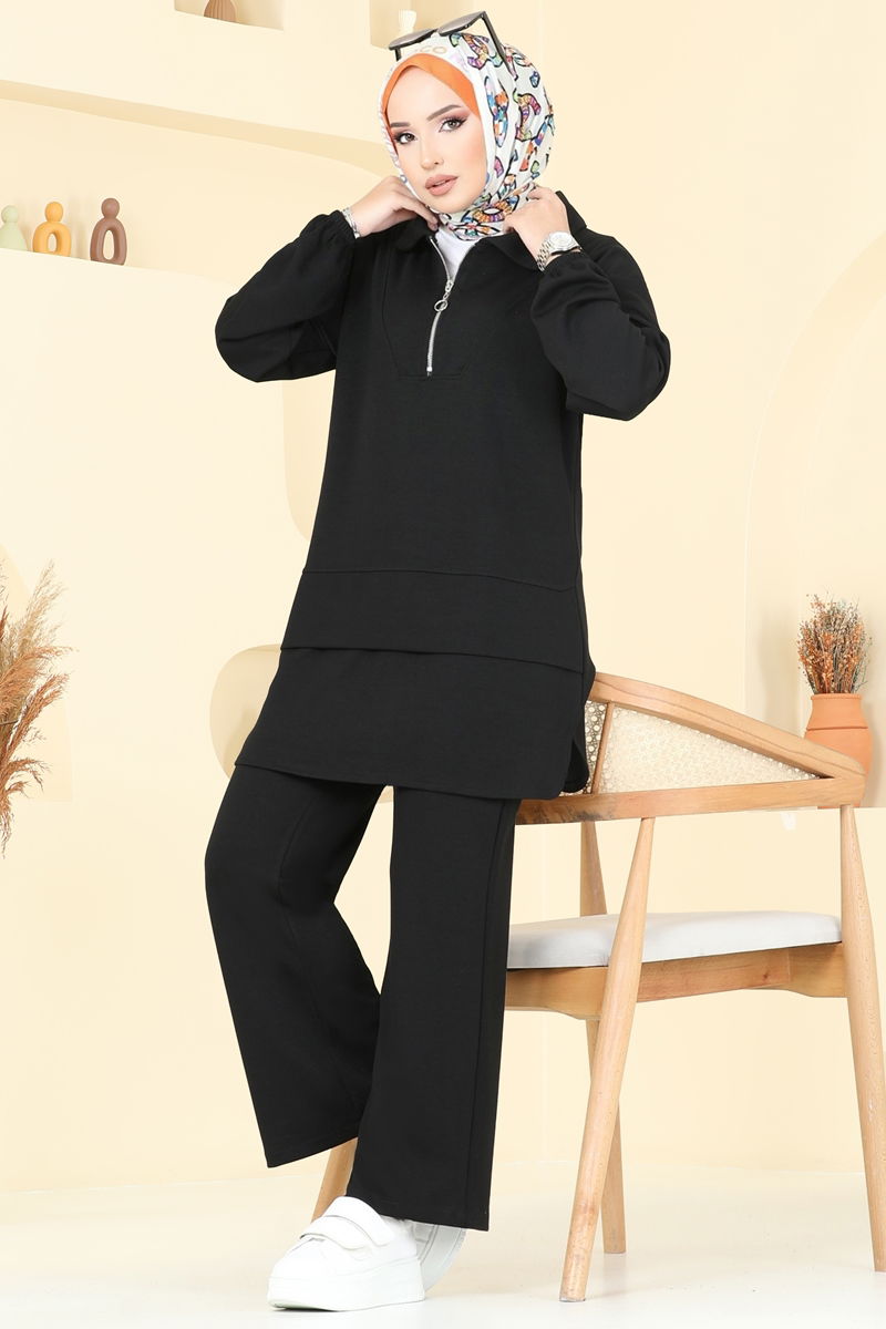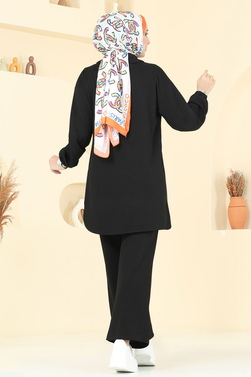 يتميز بسحّاب أمامي للإغلاق بسحّاب. المنتج لديه ياقة القميص. البلوز تحتوي على فتحة. غير مبطنة. خصر البنطال مرن. السوار مطاطي. قد يكون هناك اختلاف في الدرجة اللونية في المنتج بسبب التقاط الصور الفوتوغرافية.