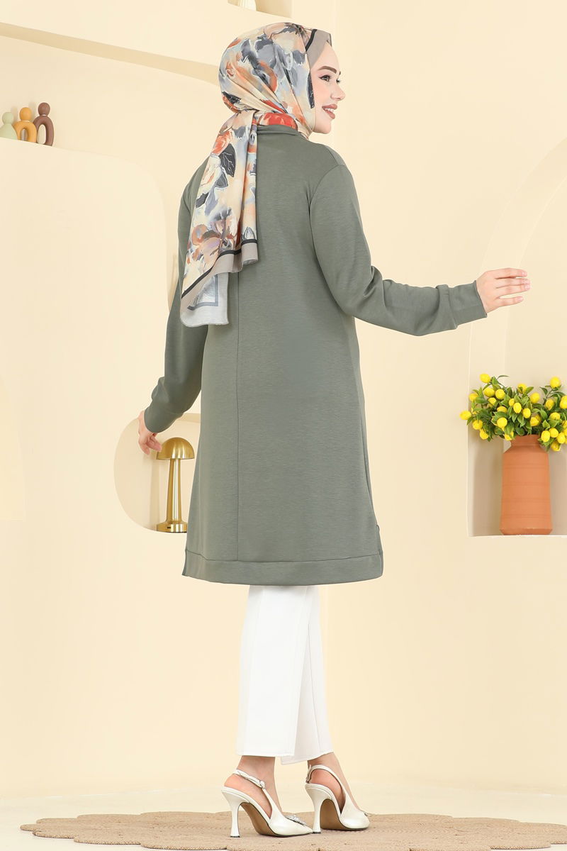 Haki Rengi Yarım Fermuarlı Modal Tunik