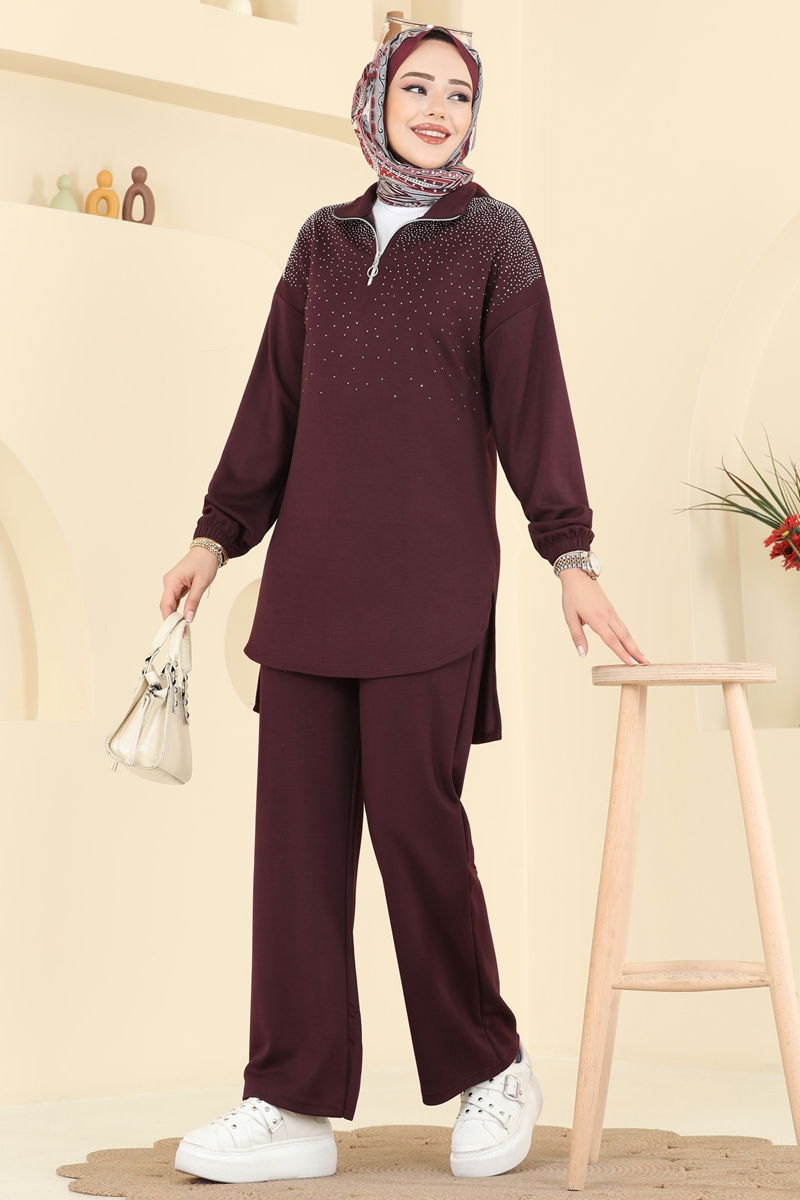 Yarım Fermuarlı Taşlı Takım 2743AYD574-MS Bordo