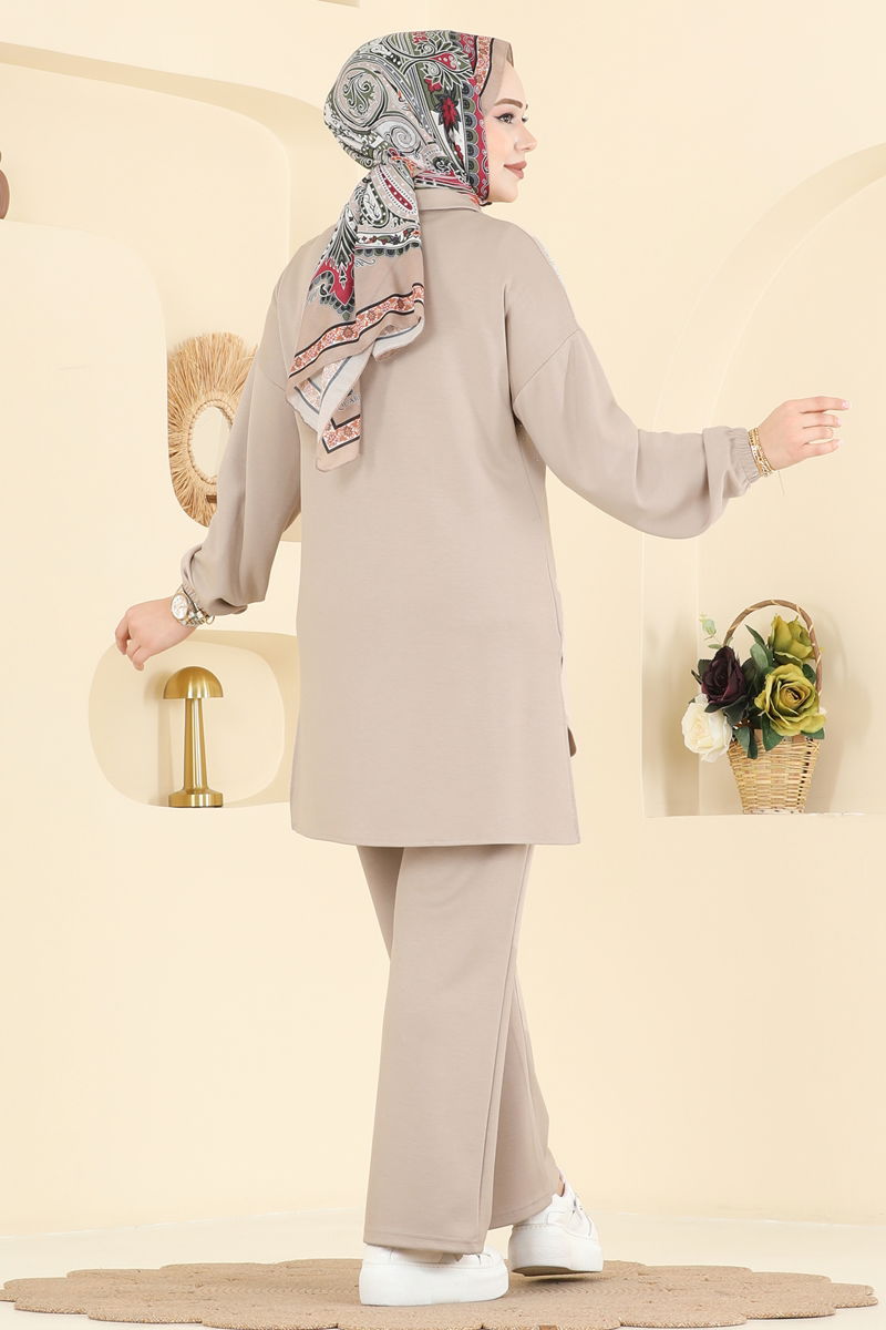 Ürün Özellikleri : Modern tesettür giyim koleksiyonuna aittir. Önde kullanılan yarım fermuar tasarımı mevcuttur. Yaka kesimi dikdörtgen biçimindedir. Astar içermez. Taş detayları yapışkanlıdır. Pantolonun beli elastiktir. Kol ucu lastikli yapıdadır.Fotoğraf çekimi sebebiyle ürün renginde hafif farklılıklar görülebilir.