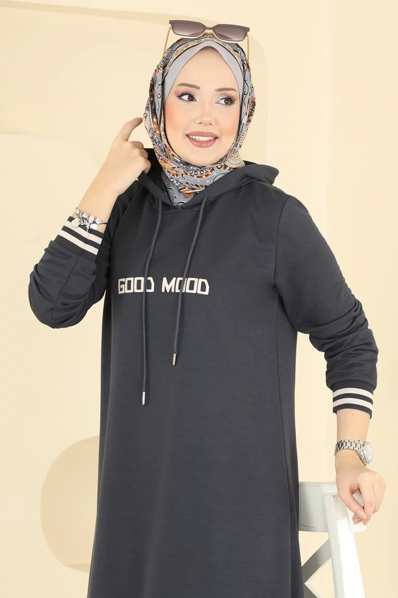 Yazı Baskılı İki İplik Elbise 717PM271-MS Antrasit