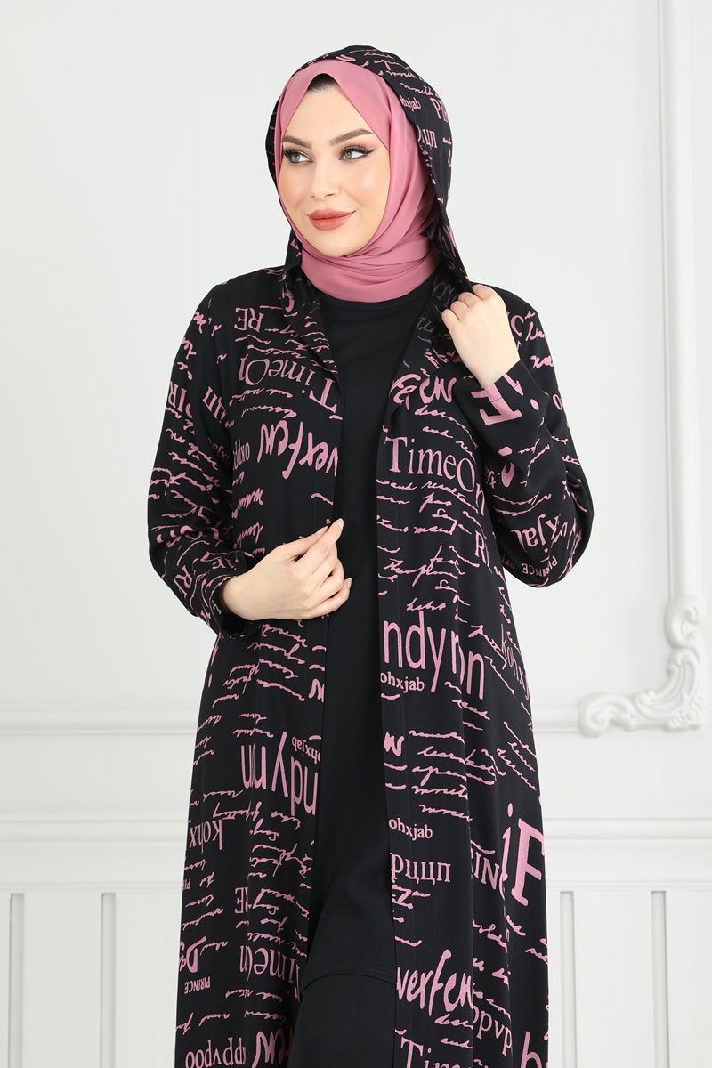 Yazı Baskılı Üçlü Takım 2525ERK1158-MS Siyah&Gül Kurusu