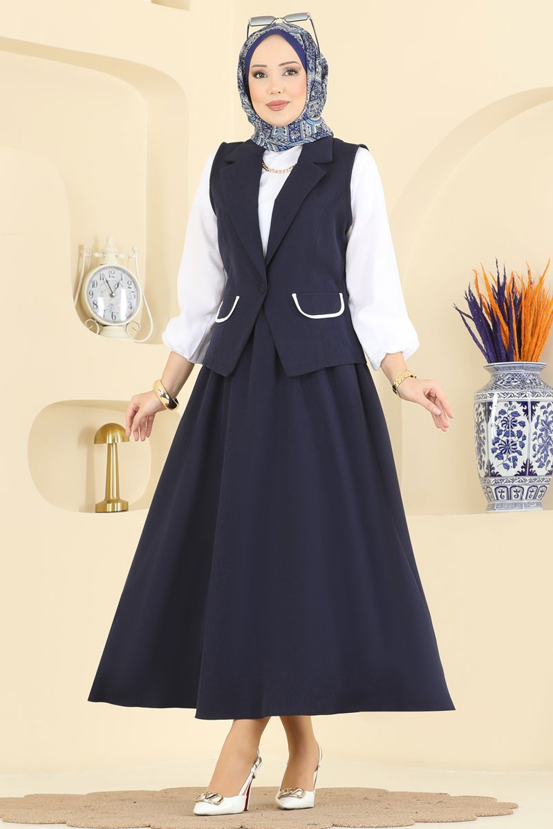 Elegan Yelek ve Etek Takımı - Lacivert Tonu