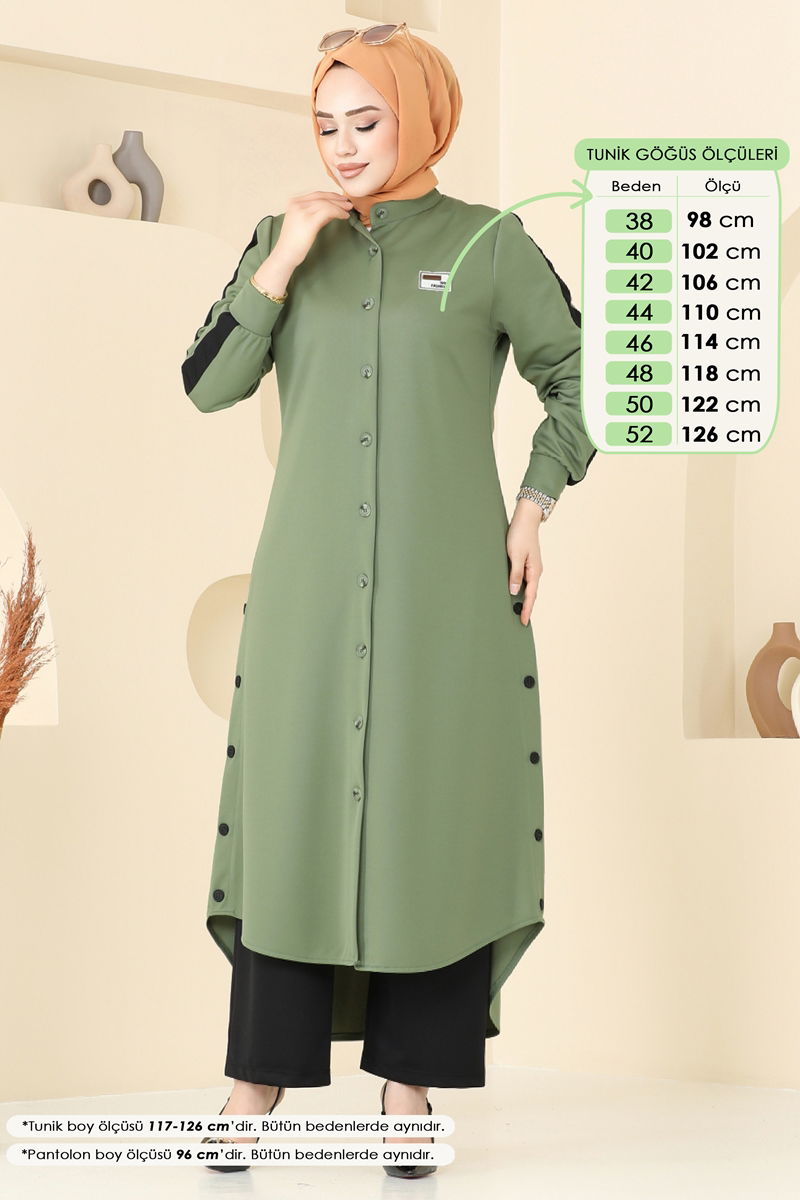 Yırtmaç Düğmeli Tesettür Takım 2608SL432-MS Çağla&Siyah