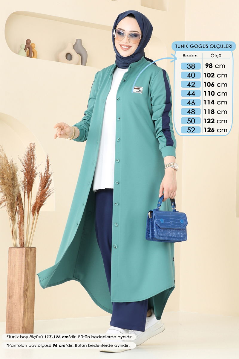 Yırtmaç Düğmeli Tesettür Takım 2608SL432-MS Mint&Laci