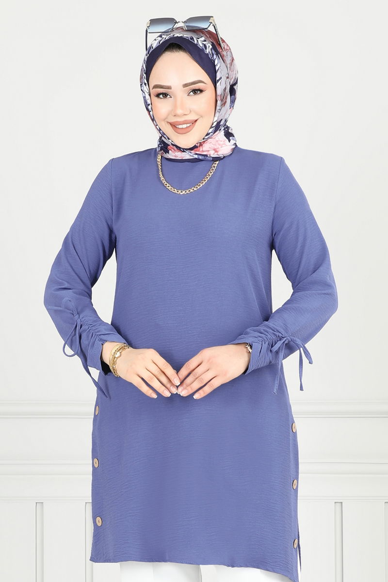Yırtmaç Düğmeli Tesettür Tunik 016MR1078-MS Açık İndigo